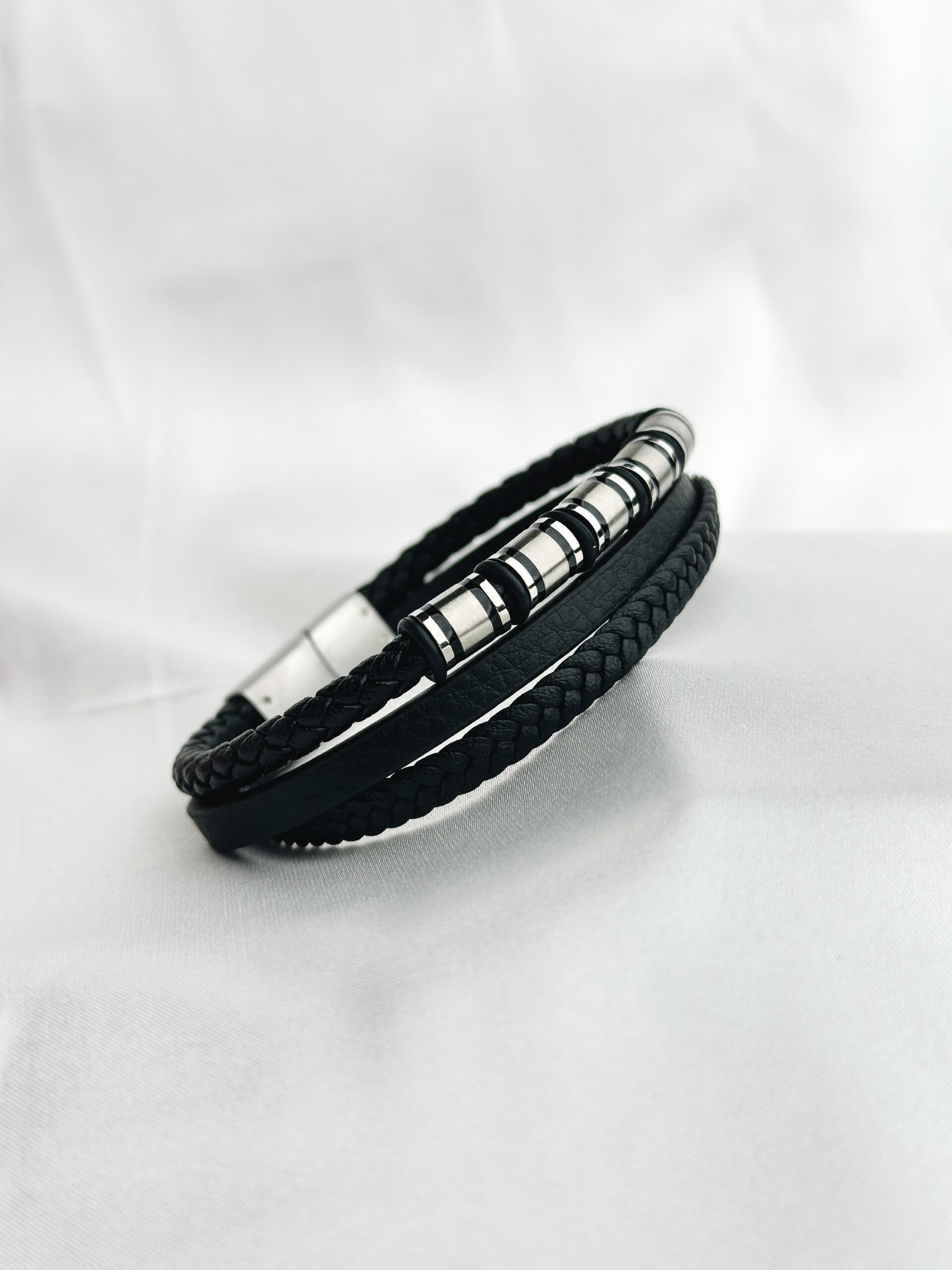 Be the first to review “Stainless Steel Black Leather Layered 21cm Bracelet” Cancel reply