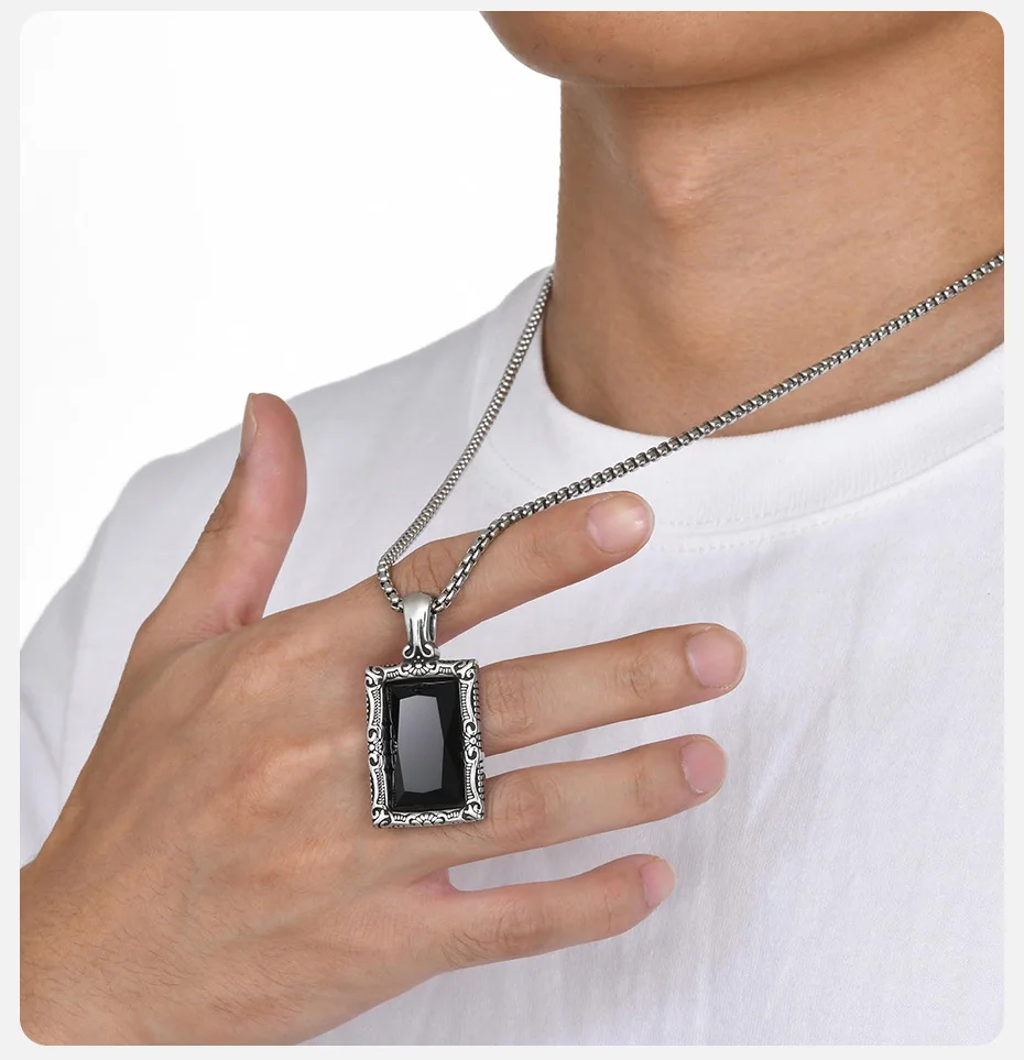 Vnox Black Square Stone Necklaces for Men