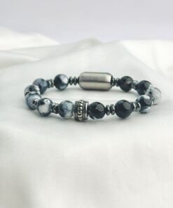 Matte White Howlite 8mm Beaded Bracelet with Black Hematite
