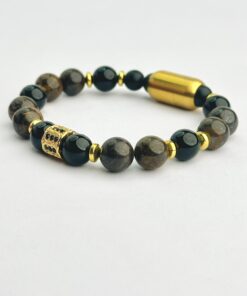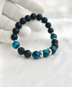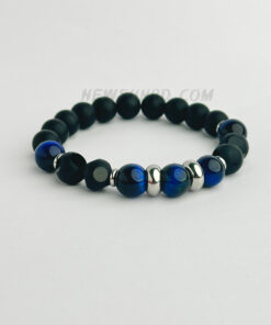 Matte Onyx & Aqua Tiger Eye10mm Stone Bracelet with Stainless Steel