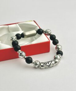Matte Onyx, Lava Bead & Sterling Silver 10mm Beaded Protection Bracelet