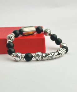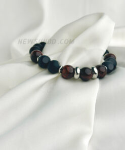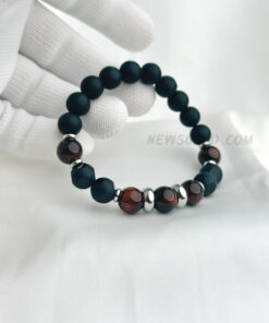 Matte Onyx & Red Tiger Eye 10mm Beaded Bracelet with Stainless Steel