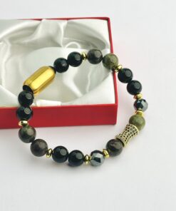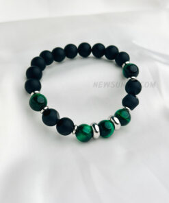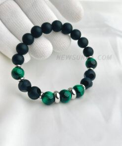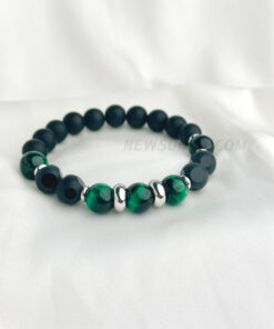Matte Onyx & Green Tiger Eye Beaded Bracelet with Stainless Steel