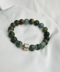 Matte green 8mm Howlite Beaded Bracelet with Black Hematite