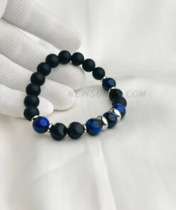 Matte Onyx & Blue Tiger Eye 10mm Beaded Bracelet
