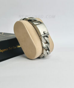 20mm Wide Glossy & Matt Silver Cuban Chain Bracelet