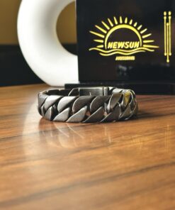 24mm Wide Matt Silver Cuban Chain Bracelet